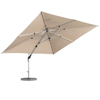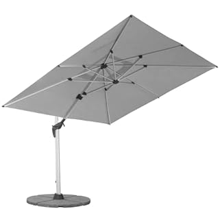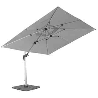 €599,95Produkt kaufenanndora Aluminium Ampelschirm 300 x 400 cm mit Kurbelsystem – Drehbar, Neigbar, Kippbar – Marktschirm, Gartenschirm – Farbe Silber Grau mit 4 Stück Granitplatten 120kg