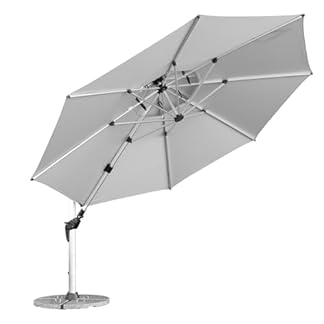 €529,95Produkt kaufenanndora Aluminium Ampelschirm 4m Sonnenschirm – mit Kurbelsystem – Drehbar, Neigbar, Kippbar – Marktschirm, Gartenschirm – Farbe Silber Grau